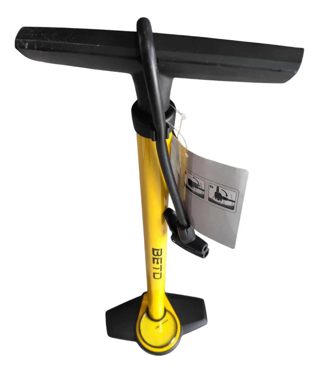 El inflador de pie BETO CMP-135SG5 es una bomba de aire de alto rendimiento diseñada para ciclistas y motociclistas que buscan precisión, durabilidad y compatibilidad total. Gracias a su estructura en acero y su manómetro de gran tamaño, permite inflar neumáticos de bicicleta y moto de forma rápida, segura y controlada.