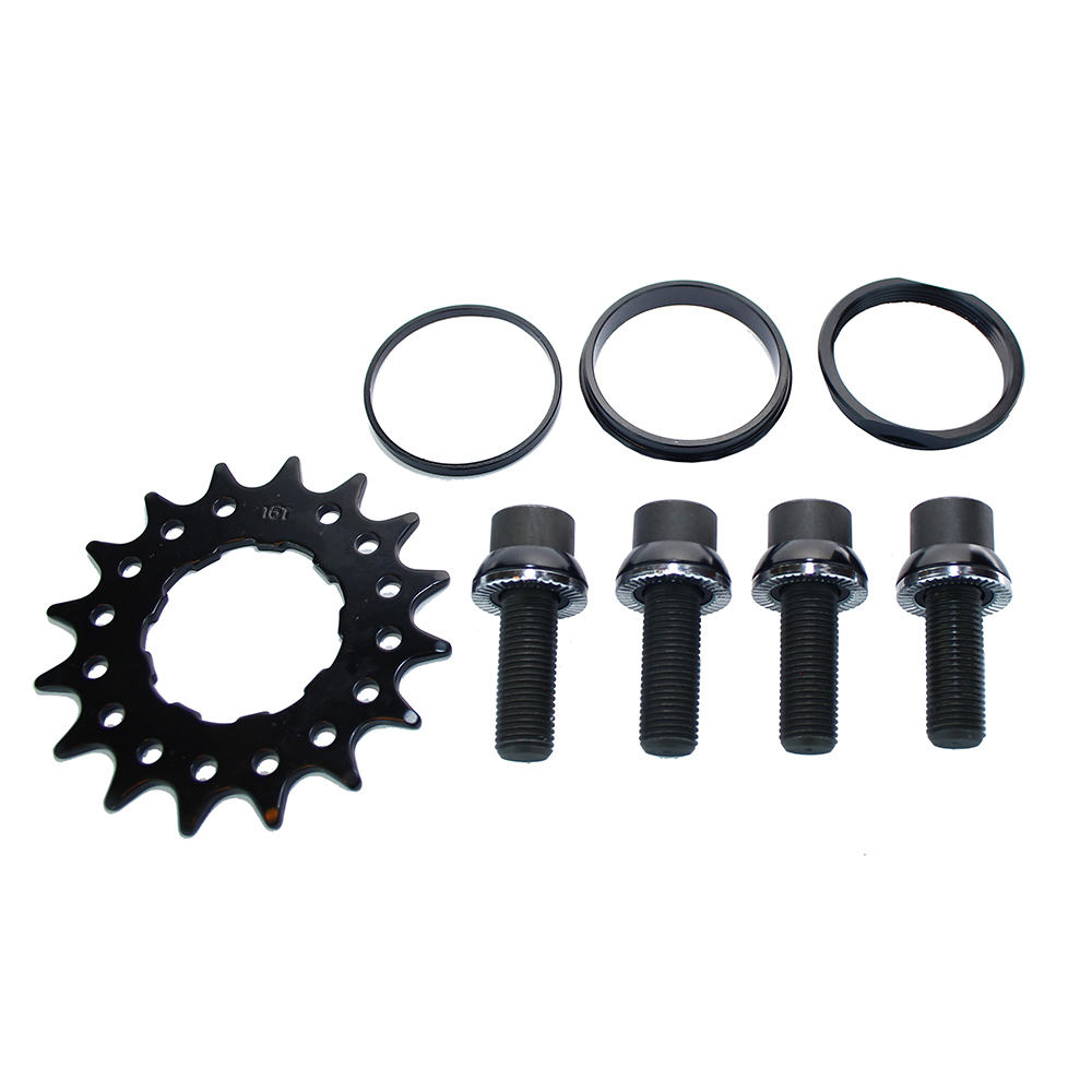 aluminio Cojinetes: 6902 (x2) Verifique el número de cojinete en el lado del sello de caucho Peso: 12.8 oz con piñón de 16 dientes