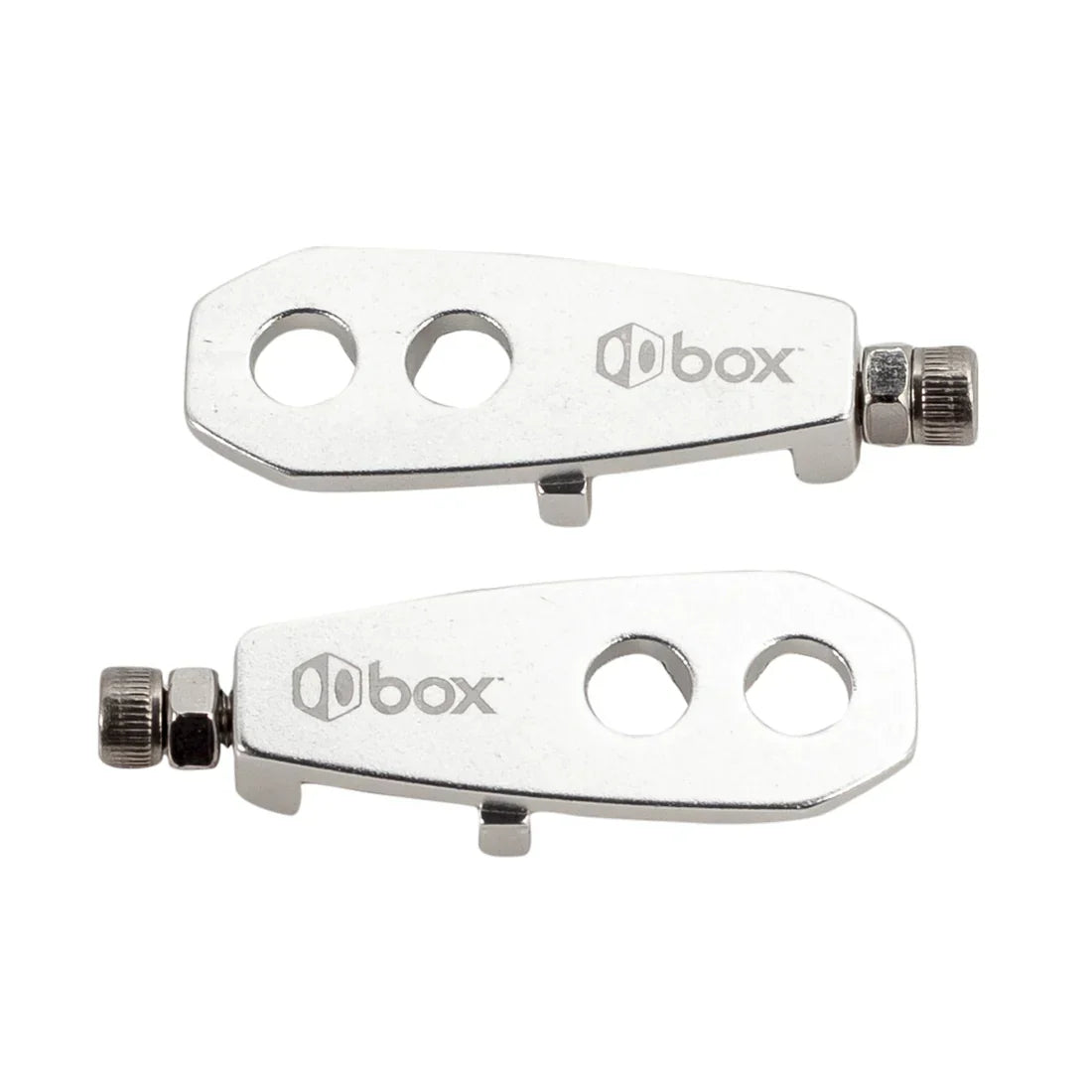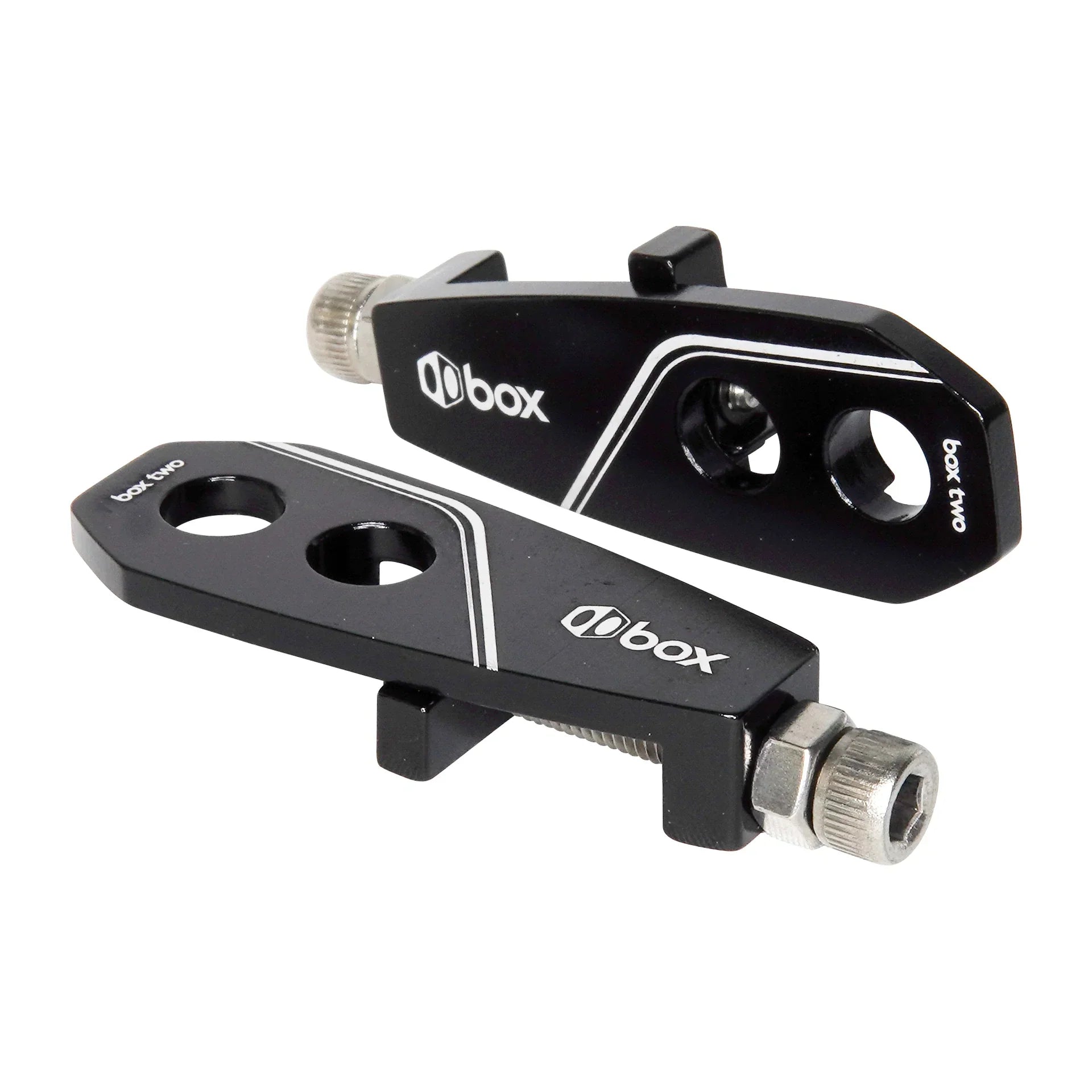 Los tensores de cadena Box Two™ le permiten ajustar la tensión de la cadena para que sea la adecuada. Dos orificios de montaje brindan espacio para un amplio ajuste en la mayoría de los marcos. Cuando se usan correctamente, los tensores de cadena Box Two™ ayudan a proteger las punteras del cuadro y mantienen las ruedas traseras.
